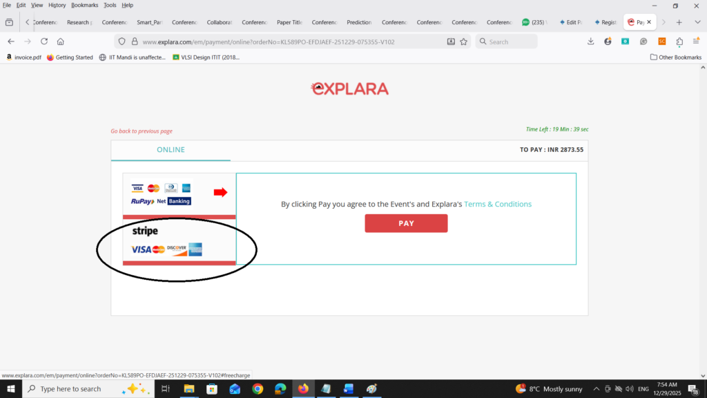 International Authors who want to pay fees in dollar by credit/debit card etc. can pay by this method. All the international authors have to select the second option i.e. International (stripe) gateway on the Explara portal. The online registration system is now available at the following link:.